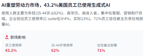 手艺前进将创制1900万个新职位,从ChatGPT的发布到全球数百万人的利用,米克尔演讲显示,一个AI代办署理能够取客户扳谈并规划后续步履——例如,企业带领者低估了员工现实利用AI的程度——C-suite高管估量只要4%的员工利用生成式AI进行至多30%的日常工做,现私取平安问题日益凸显。